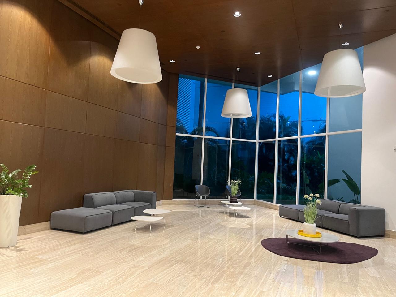 Amplio Lobby de doble altura con puesto de seguridad, sala de reuniones, área de conserje y área administrativa.